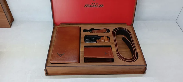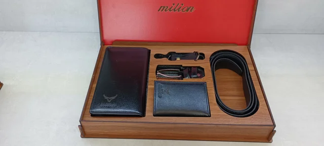 ست چرم چهار تیکه مردانه شامل کیف پول، جاکلیدی، کمربند و کیف کارت است که از چرم با کیفیت بالا ساخته شدهاند. طراحی شیک و مقاوم این ست، مناسب استفاده روزمره و هدیهای ارزشمند برای آقایان با سلیقه است.